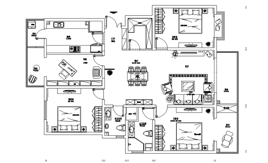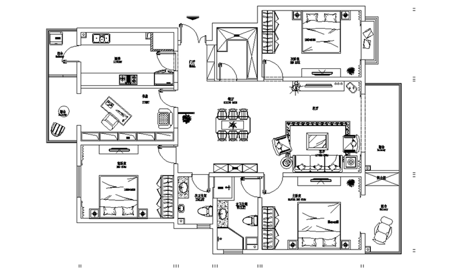 廚房:廚房空間較大,所以將櫥柜操作臺的空間設置的比較完善,將家用廚房電器修進行了合理的規劃。
