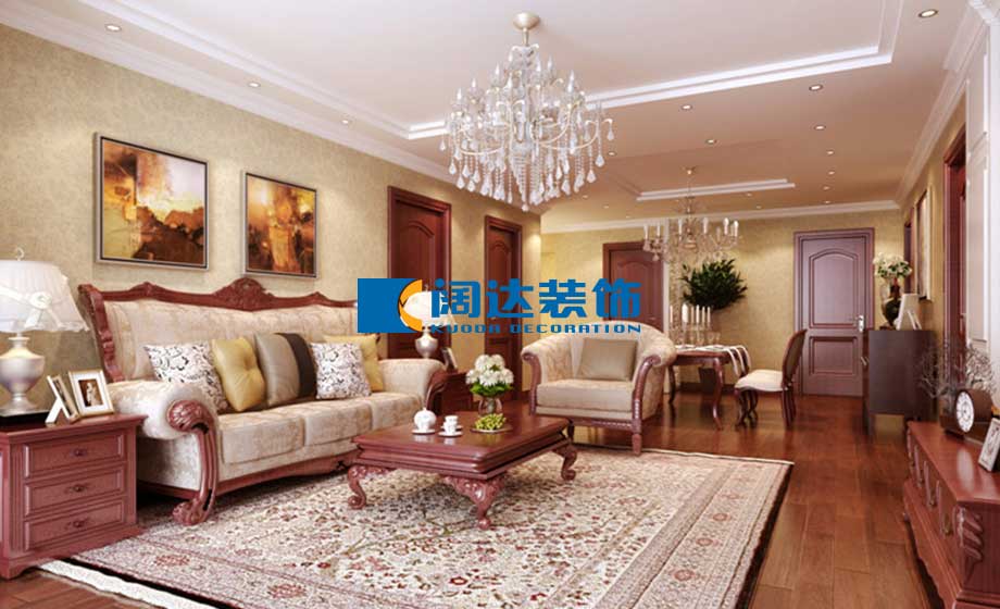整套房屋的風格為美式簡約,居室色彩主調為溫和色。家具為古典彎腿式,家具、門、窗漆成白色。擅用各種花飾、豐富的木線變化、富麗的窗簾帷幄是西式傳統室內裝飾的固定模式,空間環境多表現出華美、富麗、浪漫的氣氛。
