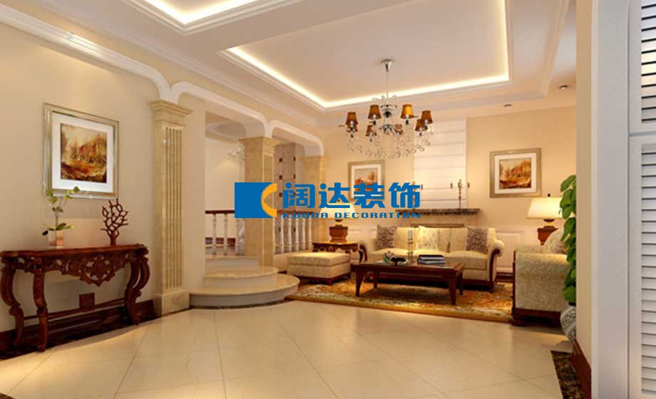 本案設(shè)計采用了簡化的美式線條造型墻板,與天棚的線條框渾然一體,覆以純凈的白色,顯得更加明快,格調(diào)端莊典雅。配合美式經(jīng)典家具,讓空間頗有內(nèi)涵與品位。地面為西班牙米黃石材結(jié)合咖網(wǎng)紋波打線,多種元素的混搭所營造的精致場景尤顯奢華富麗。同風(fēng)格案例:更多>>