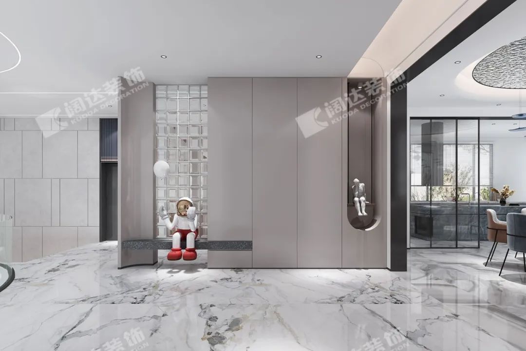 玄關(guān) 將大理石的光澤、木飾面的溫潤(rùn)、玻璃的紋理交織在光影中,打造了簡(jiǎn)潔、大氣、舒適的居家環(huán)境。