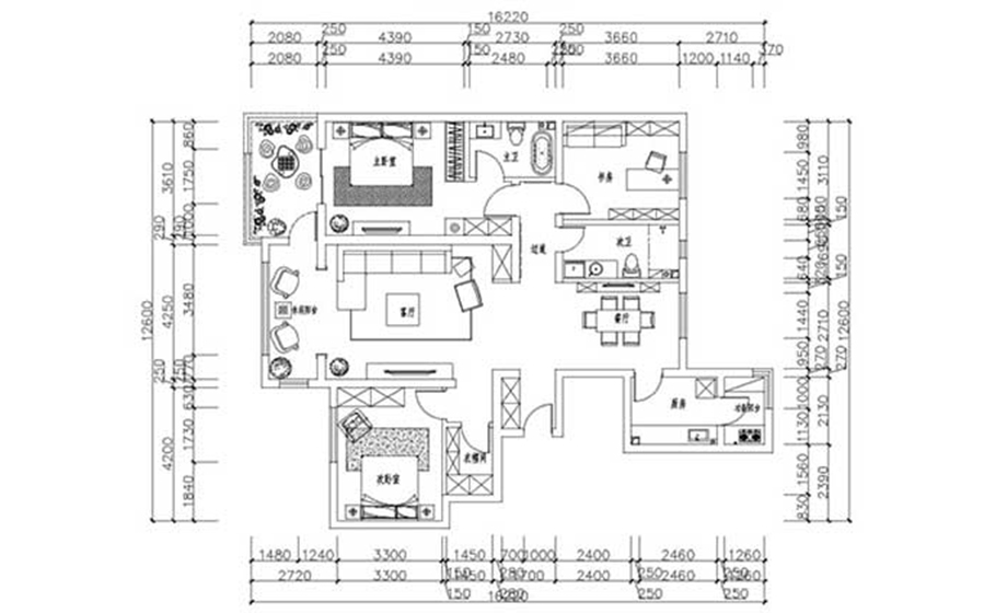 主臥:主臥一溫馨舒適為主,以床頭背景墻和吊頂的部分造型突出房間里的設計感,又不會使人覺得繁雜,擁擠。