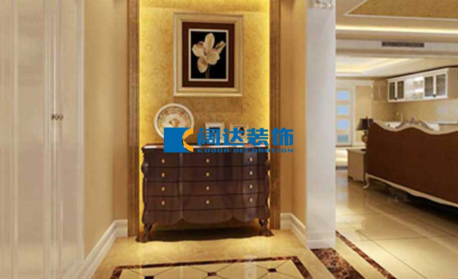 門廳做了整體衣帽柜,滿足實用功能,拆除部分隔墻,增大了客廳及門廳間的通道,使整個空間更加開闊。造型啞口的設計,