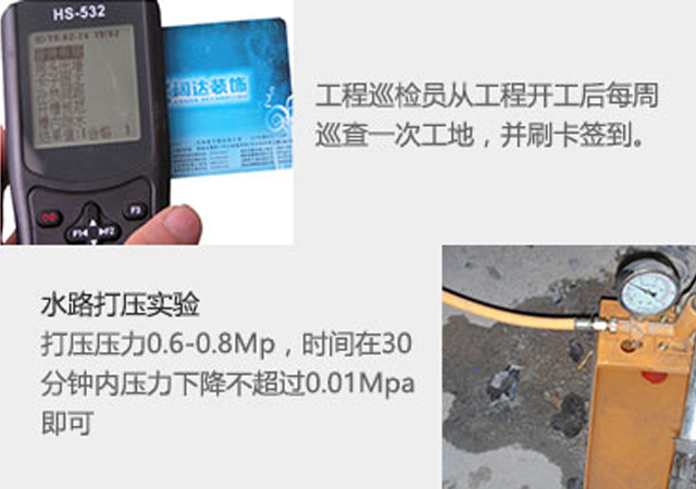 我們從材料驗收、水電驗收、隱蔽工程驗收、防水工程驗收、墻面平整程度驗收、中期驗收、竣工驗收等全關節的驗收標準,保障了工程的嚴格執行,讓您坐享品質工程。
